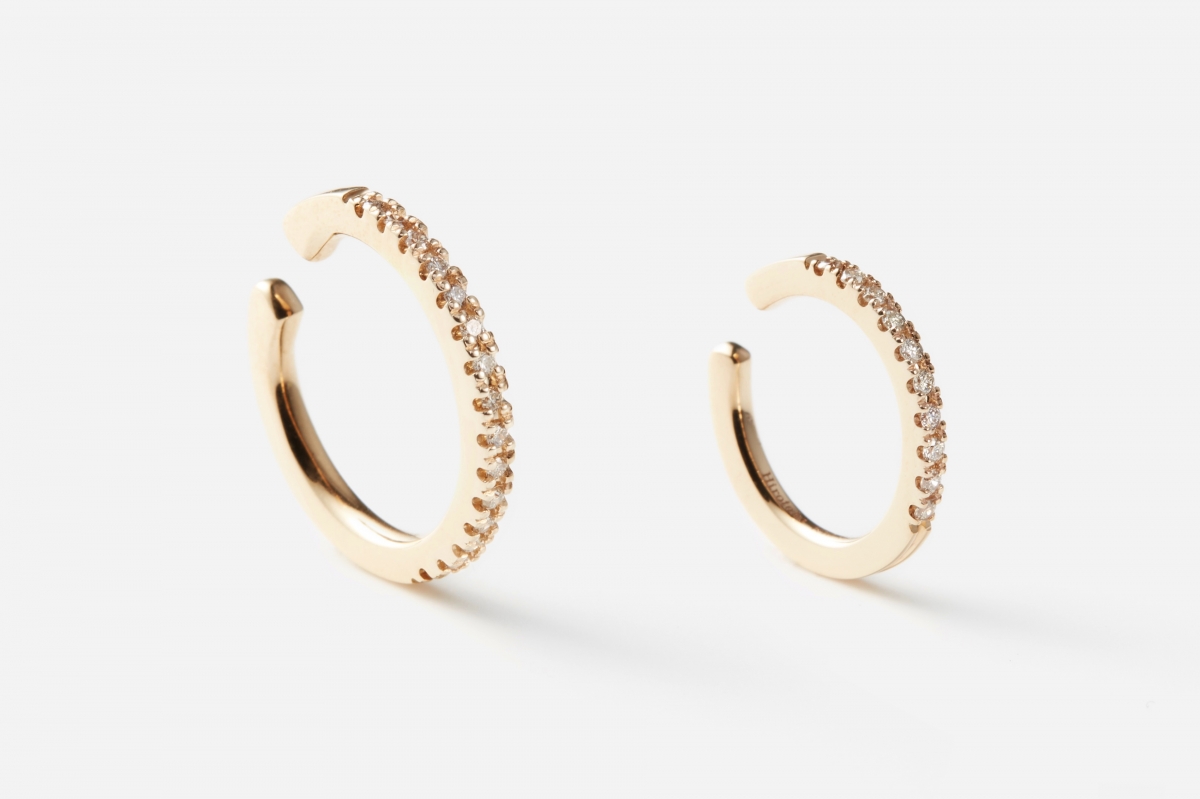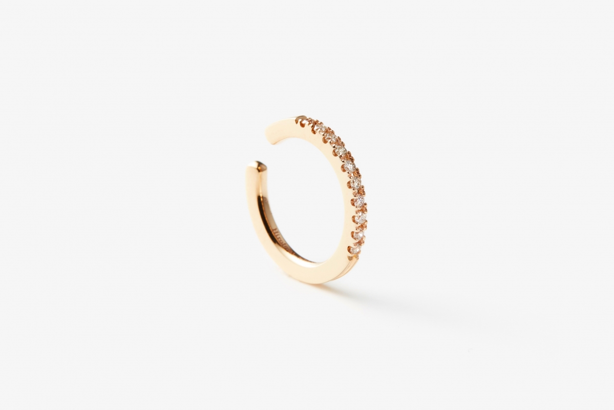 イヤーカフの半分はダイヤモンドが並び、もう半分は溝を入れた地金のデザインなので、シーンや気分によって表情を変えて2wayでお楽しみ頂けます。