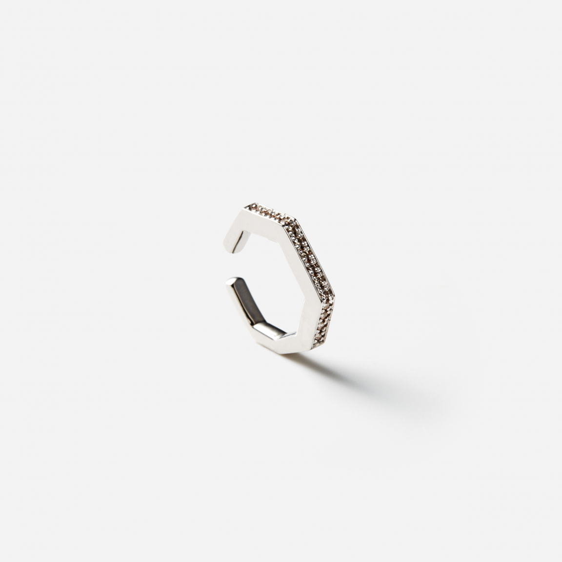 オクタゴンカットのシェイプが特徴的なイヤーカフ。横から見たときの立体的なフォルムが耳元を印象づけます。