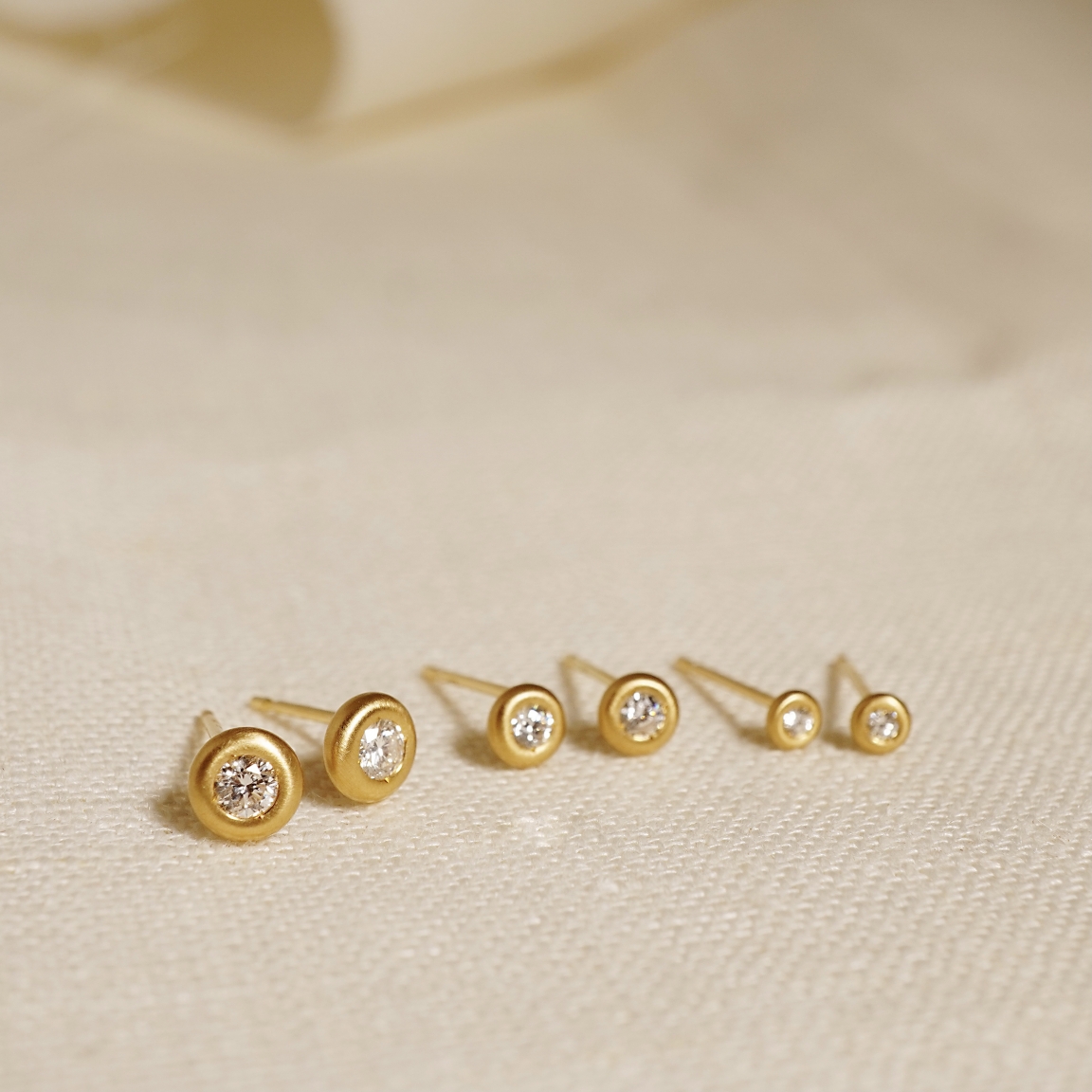 マットな質感と丸みのあるフォルムがダイヤモンドの輝きを一層引き立てます。シーンレスに活躍するソリテールスタッドタイプで、サイズバリエーションはS,M,Lの3種類。自分の中での定番品としても使いやすいデザインはギフトとしてもおすすめのアイテムです。