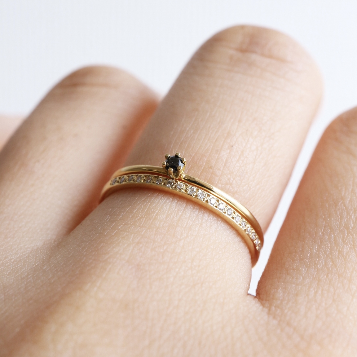 ダイヤモンドの中でも産出量が少なく、希少な存在として人気のブラックダイヤモンド。透明感のない漆黒の彩りは、グッと瞳を捉える孤高の存在感で、ジェンダーレスに取り入れやすい魅力があります。