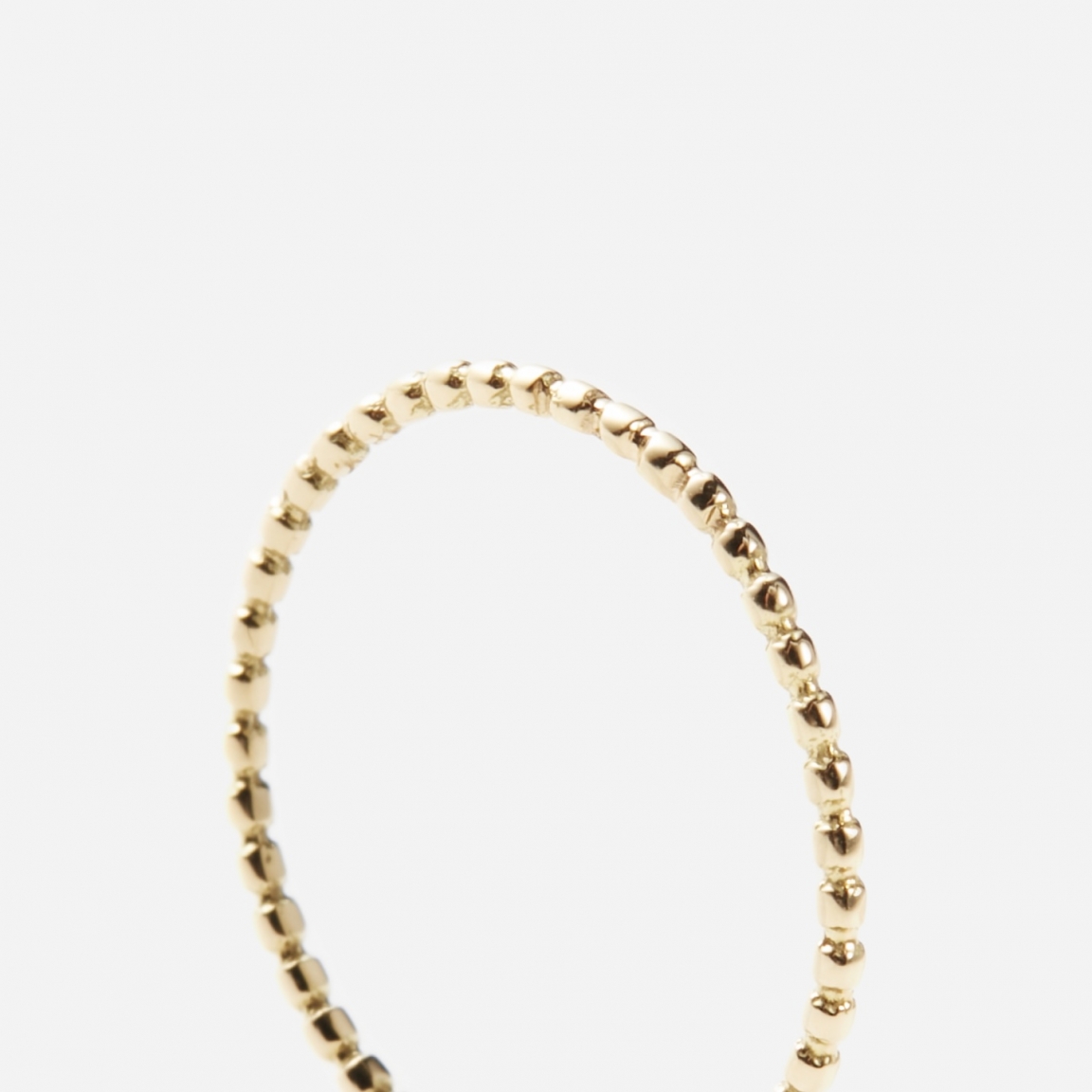 装飾や手芸などに使われる小さな玉のビーズを金属で表現。一周に均等な粒を施したBeaded Bandは、細身でありながらも、一粒一粒がきらっと輝く存在感が全体に広がります。