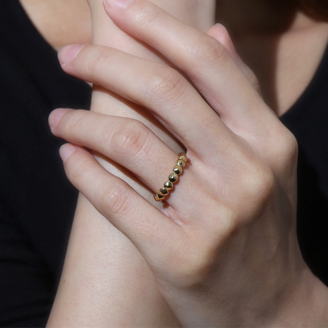 こちらのリングは、そんなジンクスをモチーフに、オレンジの実が連なる=幸せの象徴をデザイン。ぷっくりと可愛らしい粒の連なるフォルムは、指元をパッと華やかに彩ります。