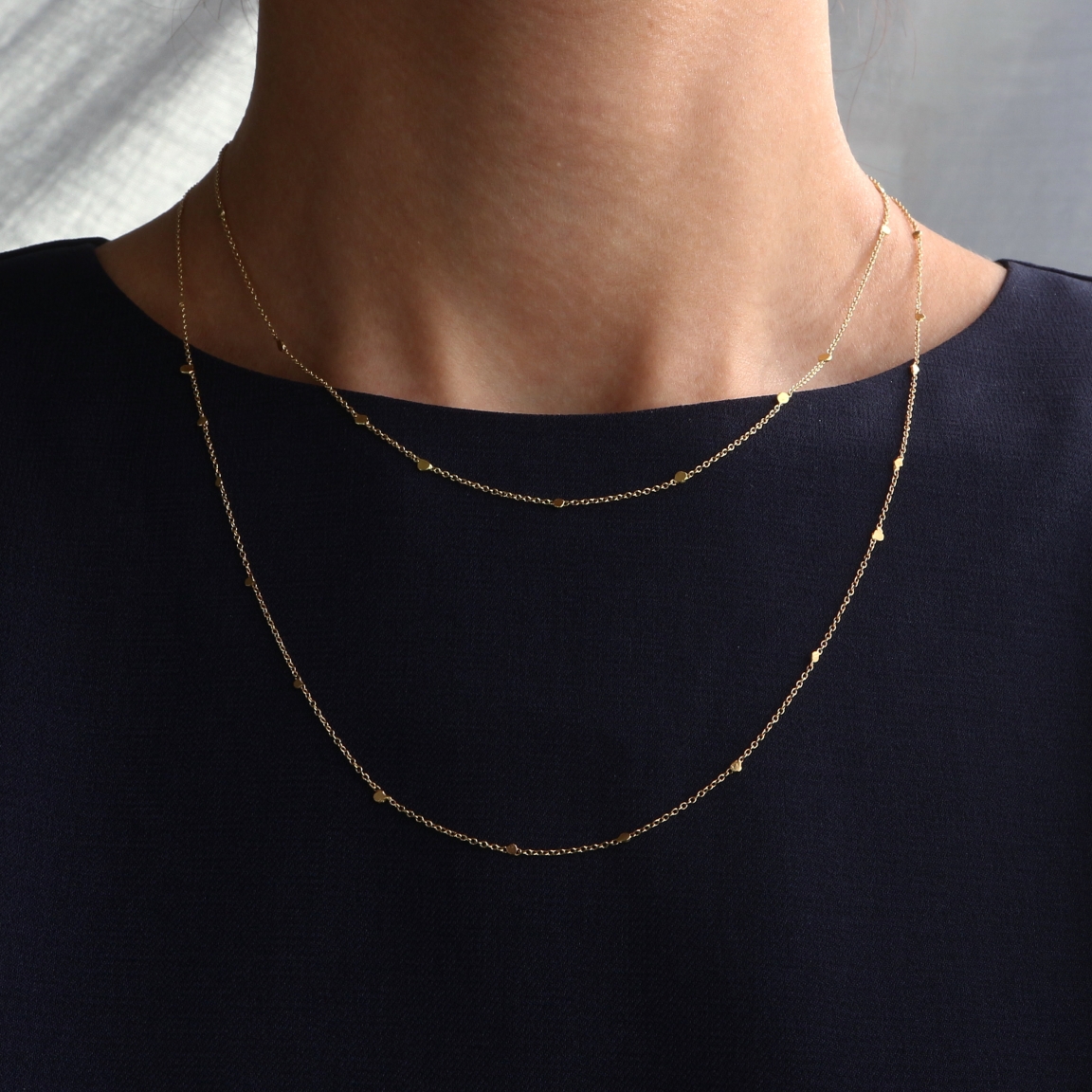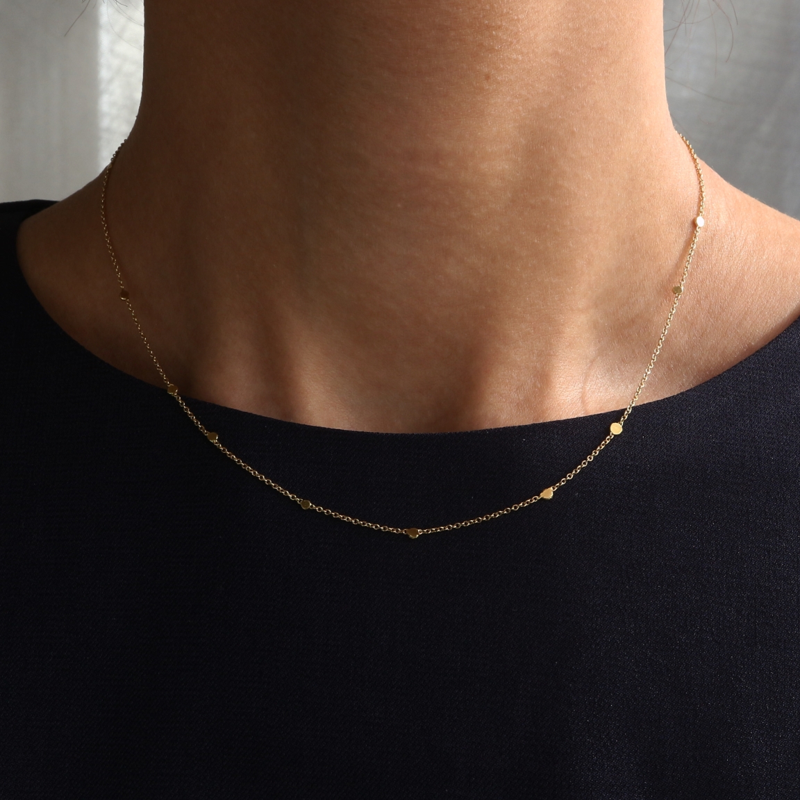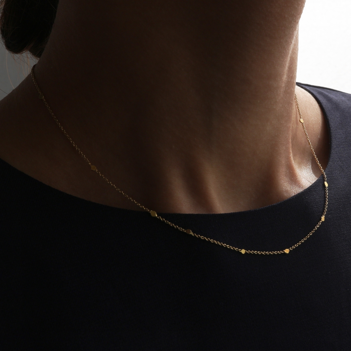 華奢なゴールドチェーンに、光の粒のようなプレートが散りばめられたネックレス。