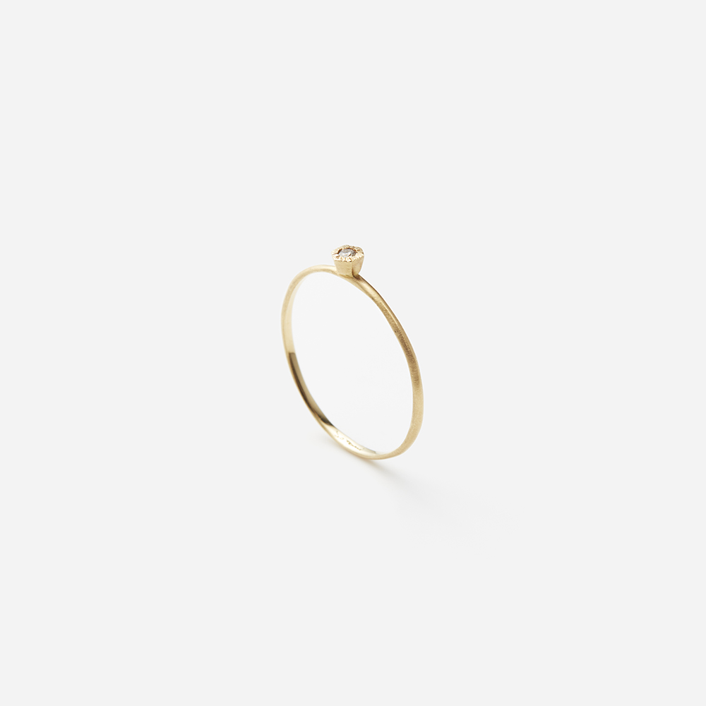小粒のダイヤモンドを六角形の石枠で留め、繊細な輝きが可憐な印象を引き出すリング。ダイヤモンドの中でも無色透明でピュアな光を放つホワイトダイヤモンドは、優しい雰囲気をプラスし、シンプルながらもさりげないその存在感を楽しめます。石枠部分にはSATOMIが得意とする細やかなテクスチャーを施し、細部までこだわったデザインが全体の存在感を一層引き立てます。
