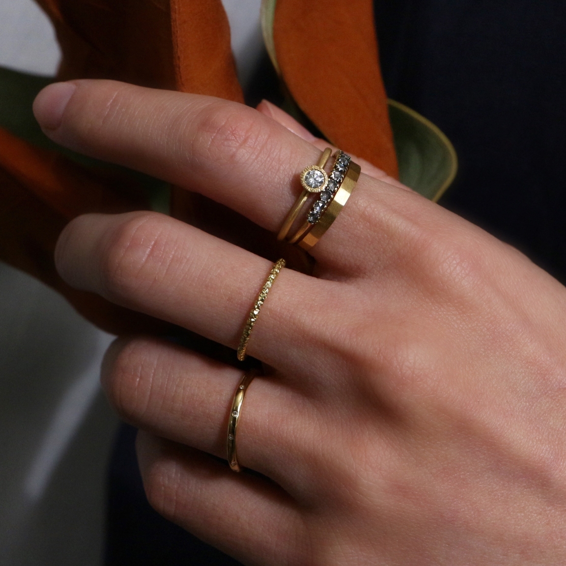 さりげない一つ着けはもちろん、ブランドの特徴でもあるスタッキング(重ね着け)で個性あふれる幾通りもの表情をお楽しみください。