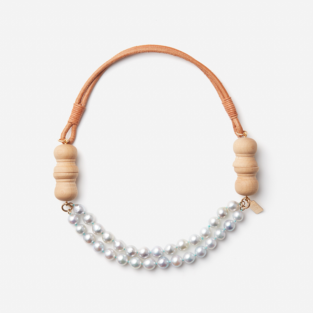 牛革、木、無調色アコヤパールという意外性のあるマテリアル合わせが、実にSIRI SIRIらしいアイテム。