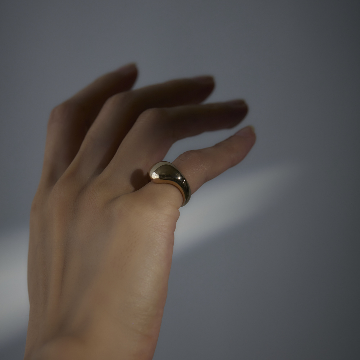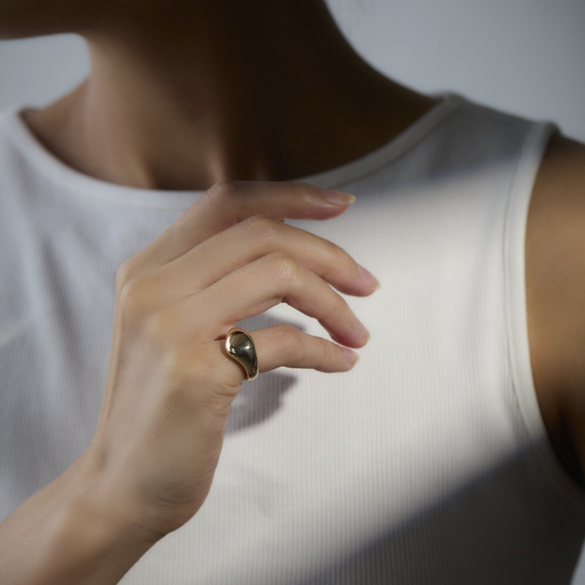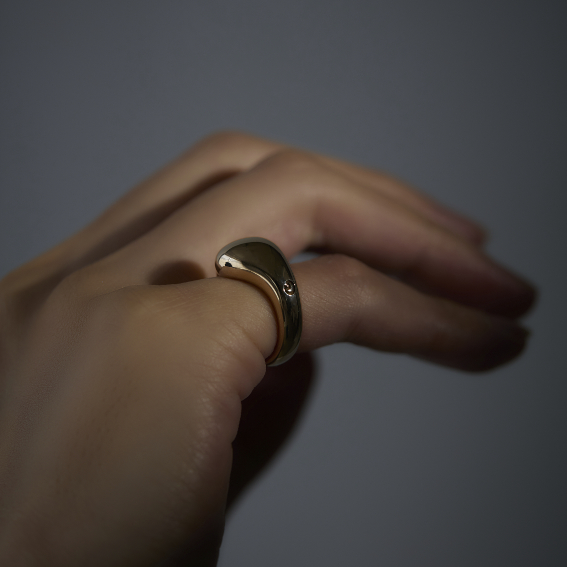 静けさの中に思索の余白を残すような、象徴性のあるリングは指元でも存在感を放ちます。